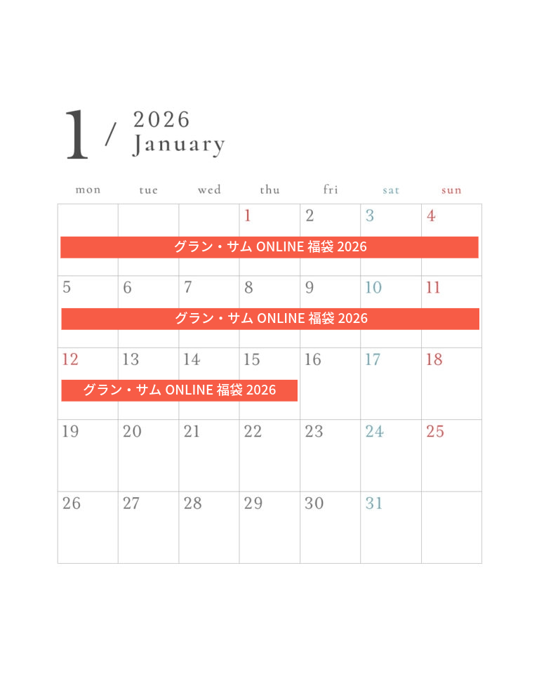 12/26(金)11:00-1/15(木)23:59 グラン・サムONLINE 福袋2026